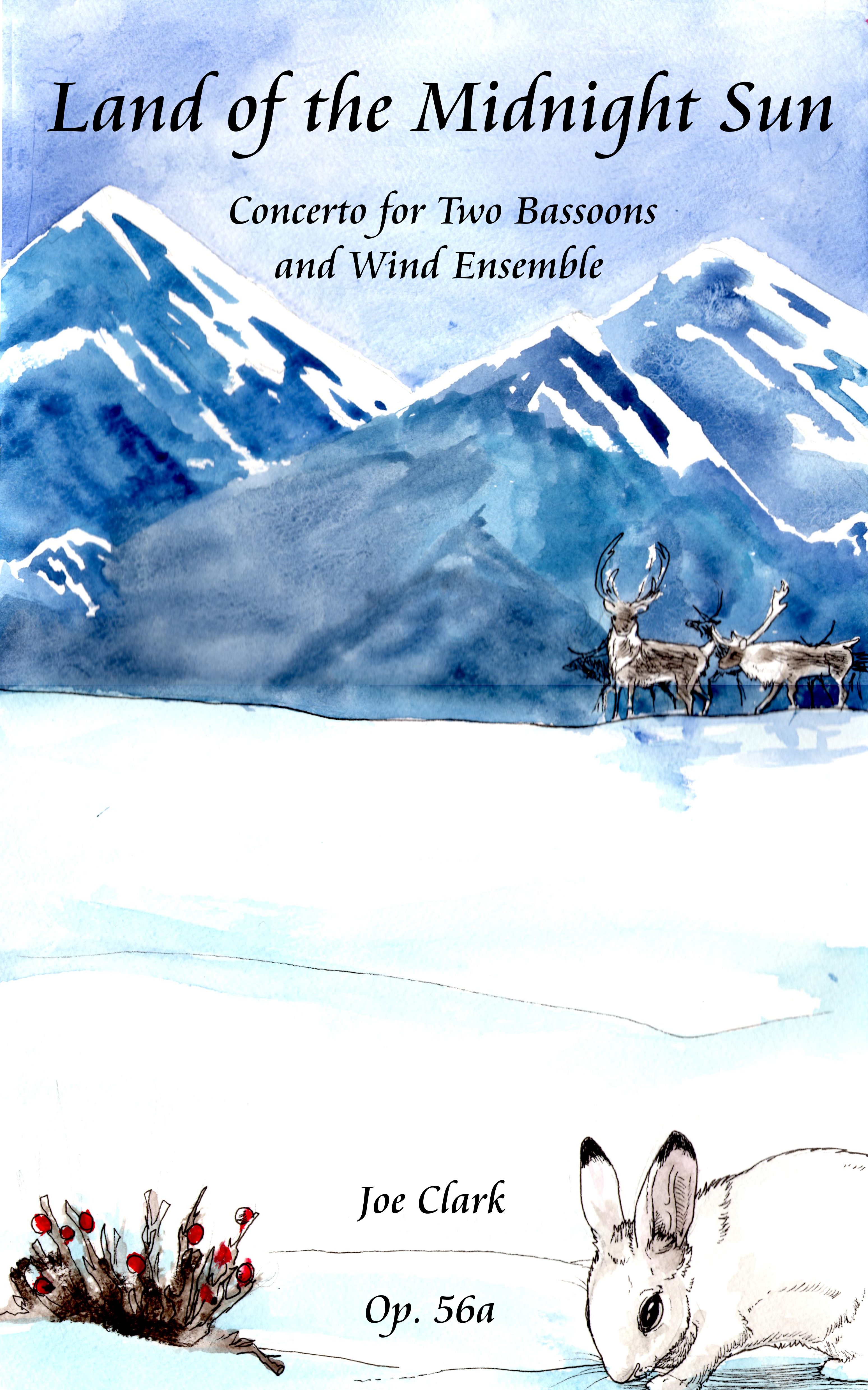 In my freshman year at Eastman, Michael Elderkin approached me with the idea of writing a double bassoon concerto for Ivy Ringel and himself, two bassoonists in my grade. Somewhere around the same time, the phrase "Land of the Midnight Sun" popped into my head as a good name for a piece (whether suggested from an outside source, or just found somewhere I cannot recall). The two ideas somehow became inextricably linked, and thus this piece was born.